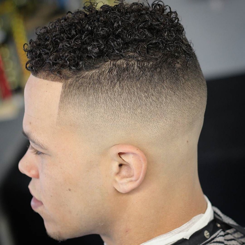 Fade is the perfect haircut if you have really curly hair because it makes styling easy. With this hairstyle sides and back are faded with short hair on top.